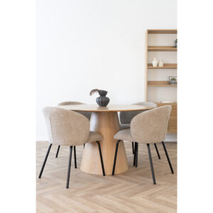 Matbord med 1 låda i sarg som har underrede i massiv oljad ek och toppskiva i ekfaner. I lådan kan man förvara tilläggsskiva. Drar man ut lådan så fungerar den som upplag för iläggsskivan på 50 cm som säljes separat.