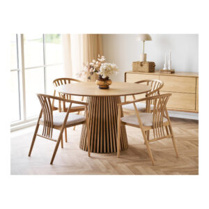Matbord med 1 låda i sarg som har underrede i massiv oljad ek och toppskiva i ekfaner. I lådan kan man förvara tilläggsskiva. Drar man ut lådan så fungerar den som upplag för iläggsskivan på 50 cm som säljes separat.