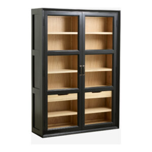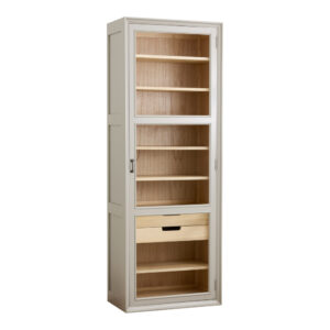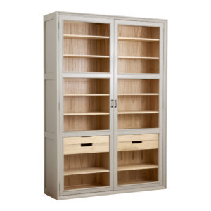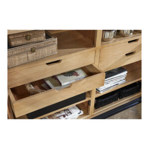 Utsida: gmelinaträ. Baksida: mindi-plywood. Hyllor: gmelinaträ.