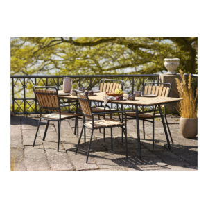 Cleveland Matbord, teakbordsskiva, naturfärgad, svarta ben, 90x220x74 cm