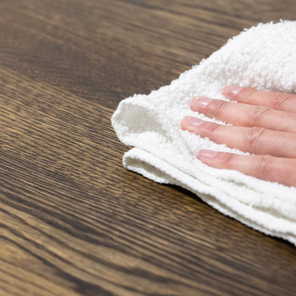 vätskor såsom vatten, kaffe och vin skall omedelbart torkas bort.