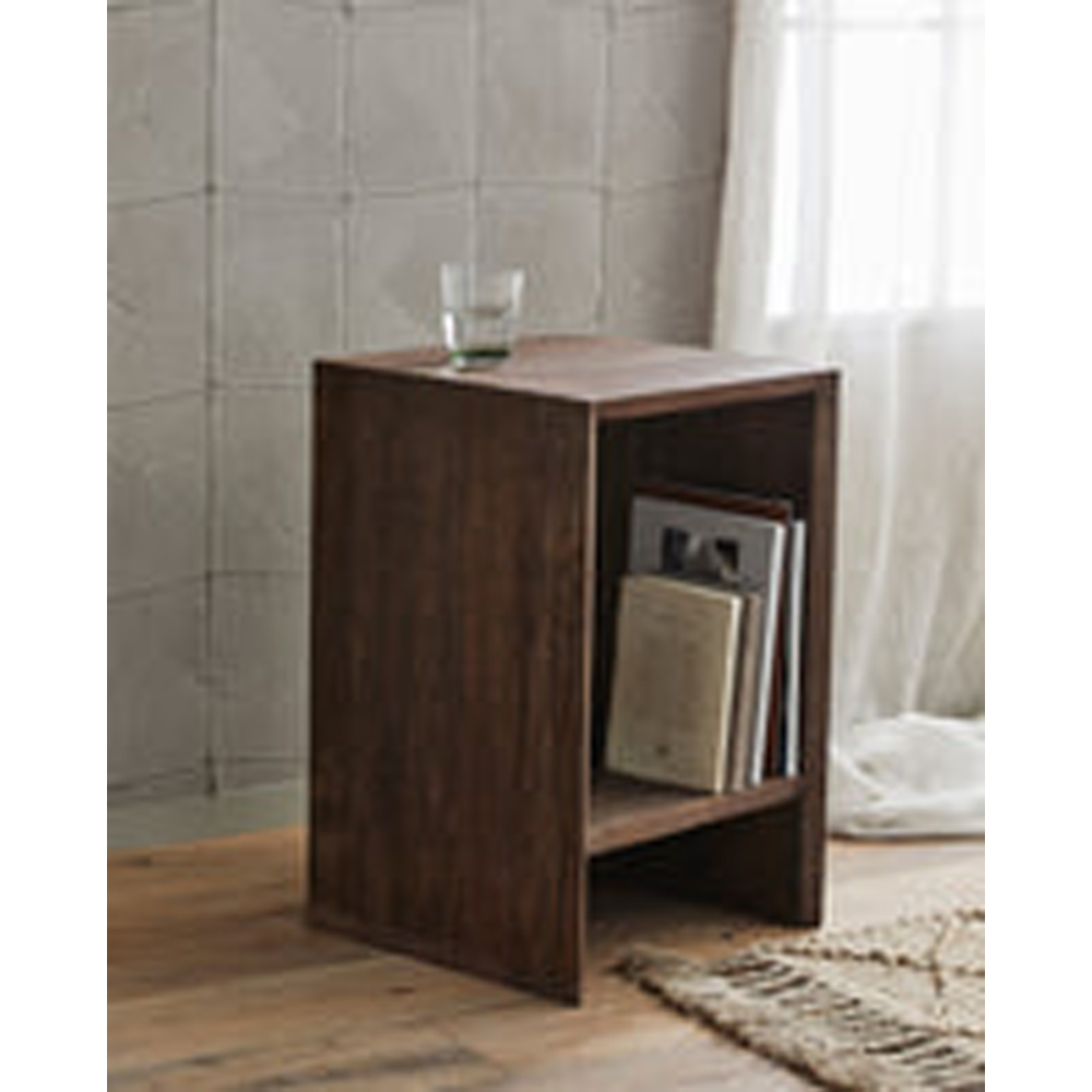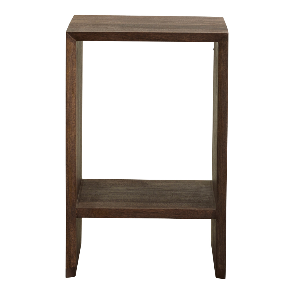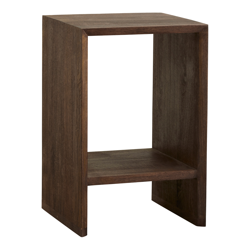 NAPO nattduksbord är tillverkat av mangoträ med en mörkbrun bets.