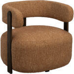 - Klädd loungestol i metallstomme med polyestertyg, ben i massiv ek.