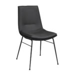• Stoppad stol med äkta läder på plywoodstomme, ben i pulverlackad metall i sandstruktur. Fot i plast.
